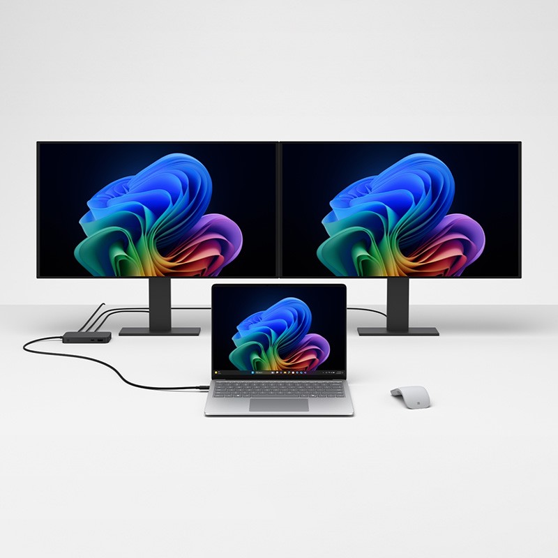 - این داک استیشن با اتصال به درگاه تایپ سی تاندربولت USB-C 4 دستگاه سورفیس شما ، ضمن شارژ نمودن آن ، در مجموع تعداد سه پورت USB ورژن 4 و خروجی تصویر HDMI ورژن 2.1 فور کی 4K را در کنار پورت شبکه LAN ارائه می دهد.